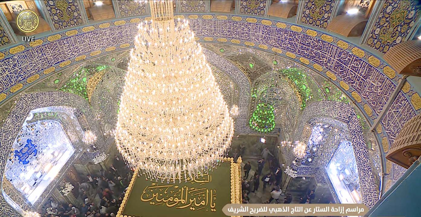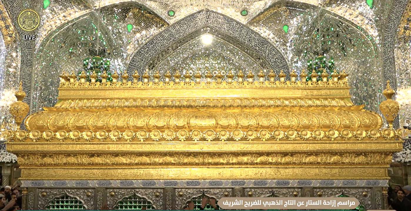 أزاحت الإمانة العامة للعتبة العلوية المقدسة الستار عن التاج الذهبي لضريح أمير المؤمنين علي بن ابي طالب عليه السلام والذي قامت بإعادة تذهيبه بعدما مر عليه ما يناهز ٨٥ عاماً منذ أن وضع فوق الضريح الشريف وقد تقادم عليه الزمن، وكما مرت عليه الظروف العصيبة في الفترة المظلمة التي تعاقبت منذ تأسيس النظام الجمهوري في العراق وقد توالت السنون والعقود من الظلم والجور على صاحب هذا المرقد الشريف وخصوصاً في عهد الحكم البعثي على البلاد.