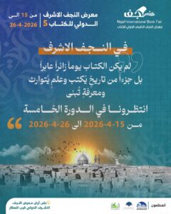 انّه الفضاء الذي يجتمع فيه الفكر وتلتقي فيه دور النشر وتُصنع فيه الحكايات الجديدة كل عام، تجربة قرائية بثقل مدينة النجف الاشرف وعمق تاريخها وروحها العلمية التي لا تنطفئ تقترب منكم من جديد، الدورة الخامسة لمعرض النجف الأشرف الدولي للكتاب والتي سوف تُقام للفترة من ١٥ – ٢٦ نيسان ٢٠٢٦